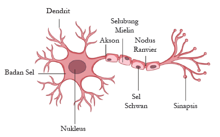 Dendrit: Bagian ini menerima impuls atau rangsangan dari luar atau dari sel saraf lain. Sinyal yang diterima berupa perubahan muatan listrik yang kemudian diteruskan menuju badan sel |